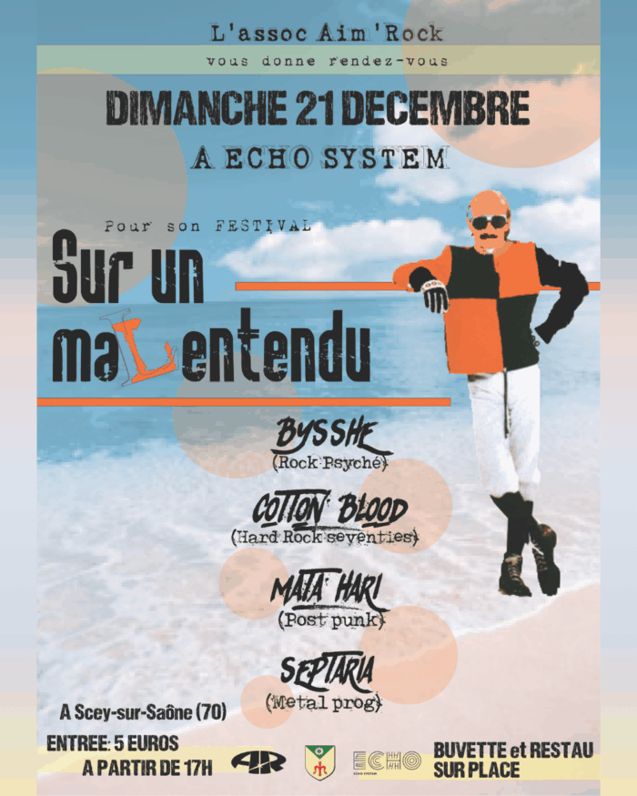 L’été dernier, la météo a eu raison de la première tentative, mais pas de leur motivation ! Toute l’équipe d’Aim’Rockn’a pas dit son dernier mot, et c’est avec plaisir qu’on les retrouve à Echo System pour une première bien rock du festival Sur Un MaLentendu le dimanche 21 décembre dès 17h00.